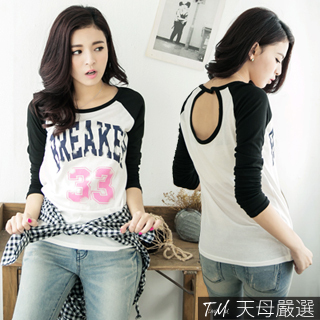 [【天母嚴選】原價299降-美式字母挖洞棒球棉T(共二色) ]在momo購物網上你可以比價 比品質 更可以比網友的推薦文和試用文 好用文