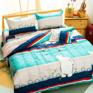 【歡樂北極熊-藍】臺灣製加大五件式純棉床罩組