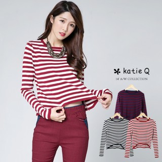 【-Katie Q】條紋配色短版針織上衣-F(共3色)