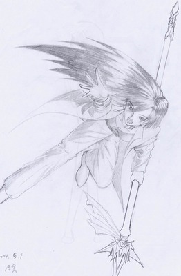 「妳呢…基本上可以說死過一次了,不過還好遇到了我,由我的最高傑作───豪微米機器人M─HQ99型,幫妳修復了那殘破不堪的身體,另外我還在妳體內裝了兩個東西。」了葉德博士不理她(怎麼可能會理她…),繼續自顧自的講了下去。