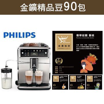 【暢銷產品】淺口袋旗艦方案-金鑛精品咖啡豆90包+飛利浦Saeco Xelsis 全自動義式咖啡機 SM7581-分期付款