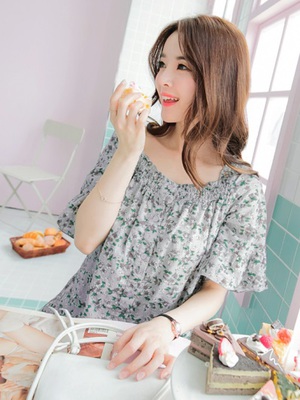 【最便宜】高含棉滿版花朵排釦設計鬆緊領口荷葉袖上衣-熱賣家電推薦