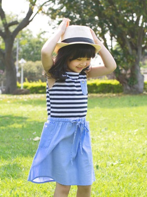【限時優惠】條紋拼接雙口袋綁帶洋裝-居家商品