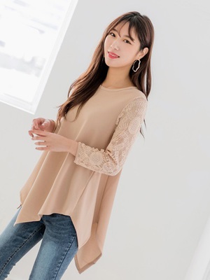 【刷卡購物折扣】不規則下襬鏤空蕾絲拼接厚雪紡上衣-周年慶活動限時折扣商品