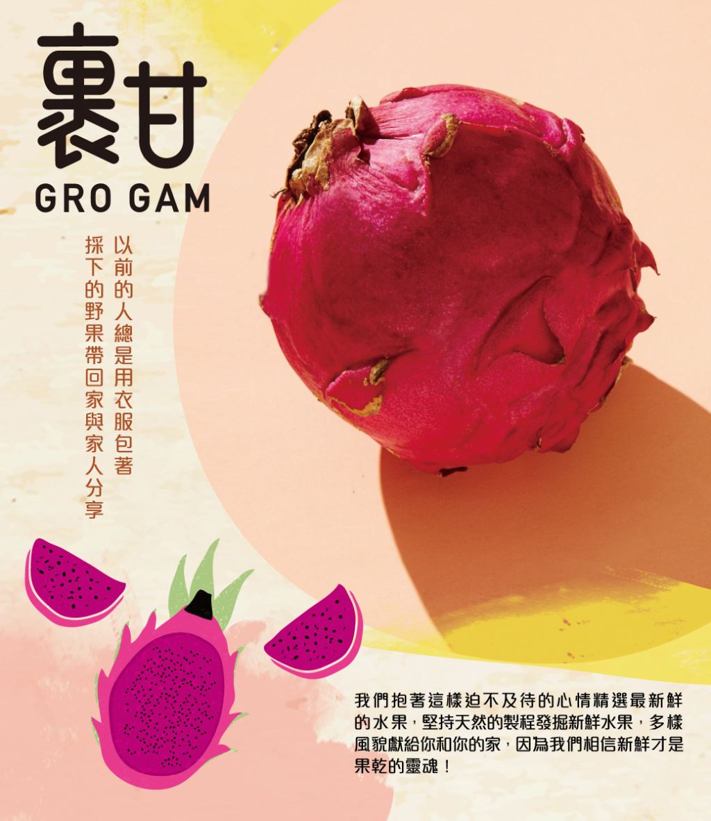 選用在地的新鮮水果, 低溫封存美味,去除多餘水分,保留水果原有的糖分!與您分享”裹甘”酸甜活力的滋味!