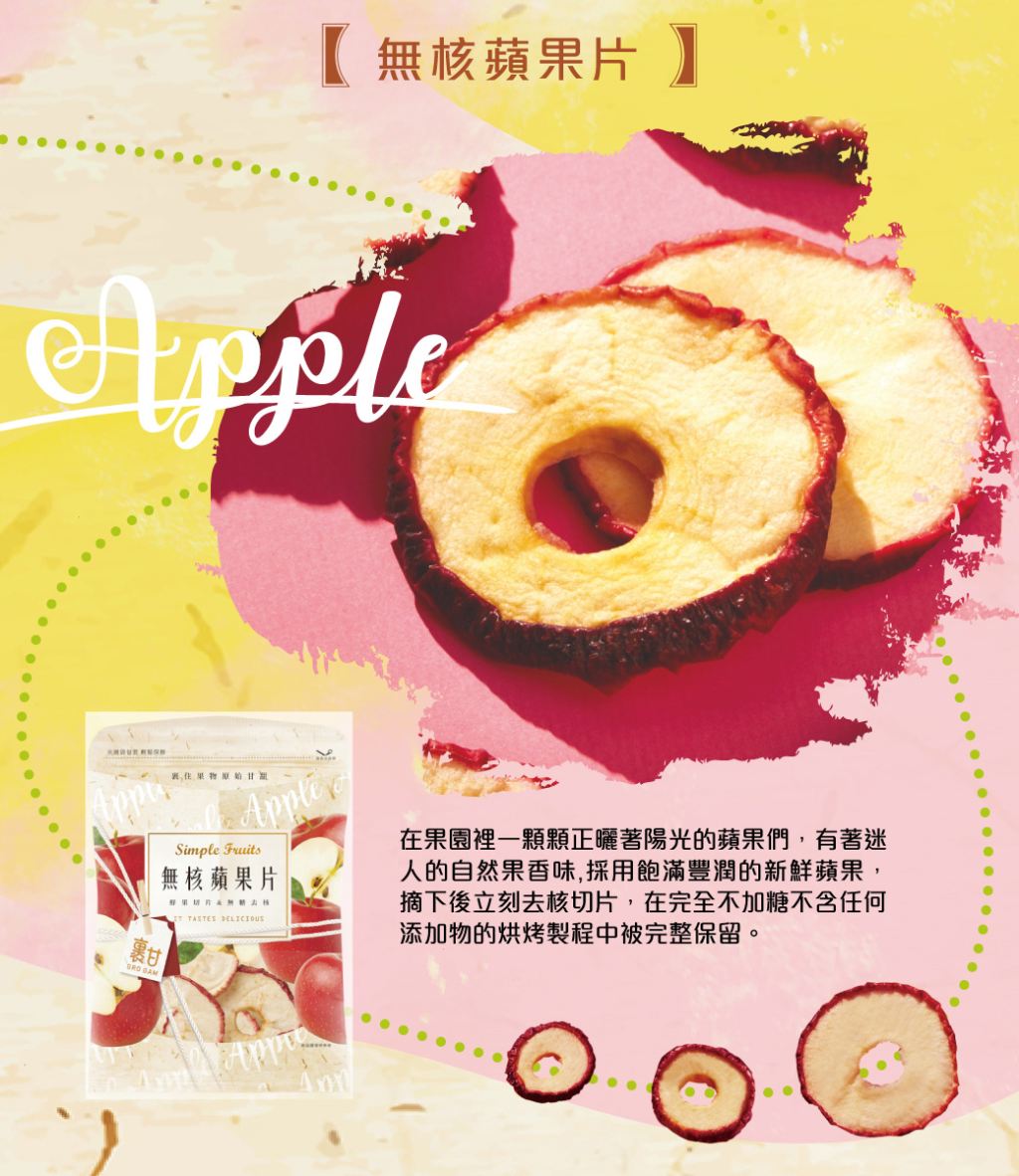 無核蘋果片,留下蘋果最好的部分,連皮一起將美味封存。