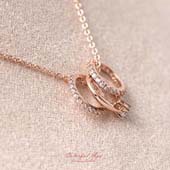 折價卷 經典甜美玫金雙圈水鑽戒指項鍊最新