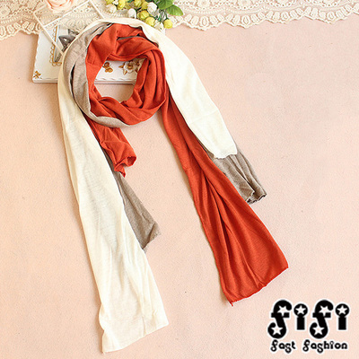 獨家 最新出版【FIFI飛時尚】不規則拼色棉質圍巾 防曬空調披肩(白橙灰) 獨家