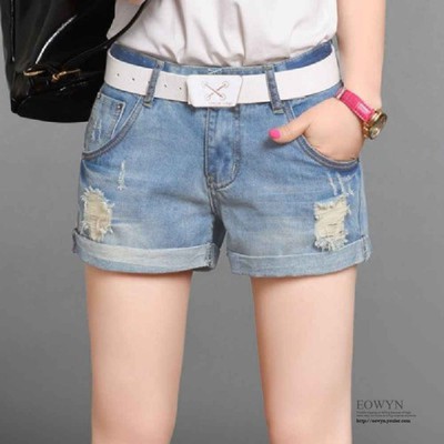暢銷排行 熱賣【EOWYN】牛仔短褲女夏水洗寬鬆大尺碼短牛仔褲百搭闊腿卷邊破洞(1色-藍色S-M-XL-現貨) 暢銷排行
