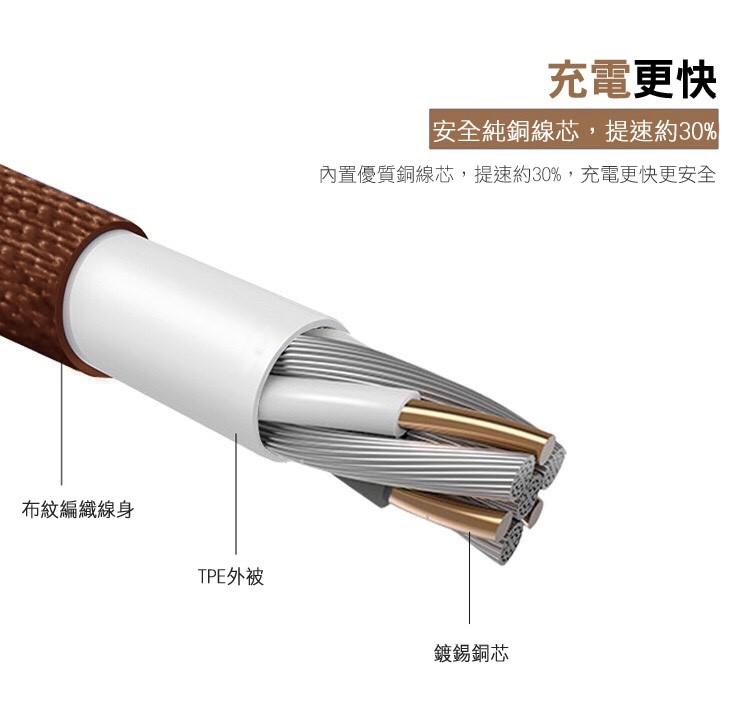 明星商品 產品線芯採用86AWG鍍錫銅,最高充電電流達到5V2.4A.