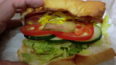 上圖為SUBWAY的外包裝紙袋是我妹買給我吃的 完整的一大個很像漢堡 瞧瞧裡面包的是什麼好多青蔬呀好不容易...