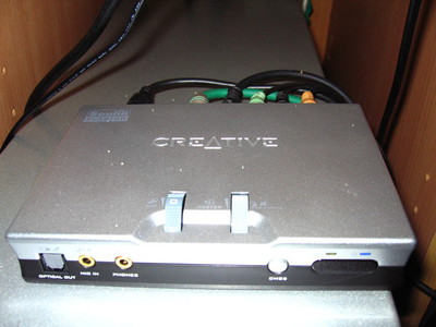 這個CREATIVE出的外接式的USB音效盒,後面有SPDIF可接同軸,前面也有光纖輸出孔 ,還可接MIC,...