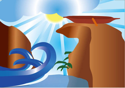 把船畫在山崖上