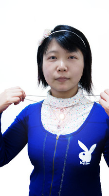 我很喜歡攝影,看了點攝影技術的知識後,再來拍老婆。她也很會擺姿勢,把頭髮撩起來,很有模特兒的架勢。在照片上加入...