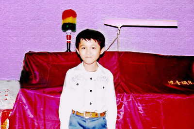 小時候可不可愛???將小時老舊的照片再做影像處理,去除掉牆上的插座(原鋼琴左旁),燈變成粉紅色,將白色衣服的污...