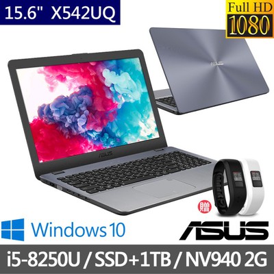 【 【ASUS】X542UQ 15.6吋FHD筆電-霧面灰(i5-8250U-4G-1TB+128G-NV 940MX 2G-W10)+GARMIN手環 】