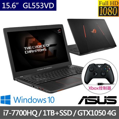 【 【ASUS】GL553VD 15吋FHD筆電-黑(i7-7700HQ-8G-1TB+128G SSD-GTX1050 4G -W10)+XBOX手把 】