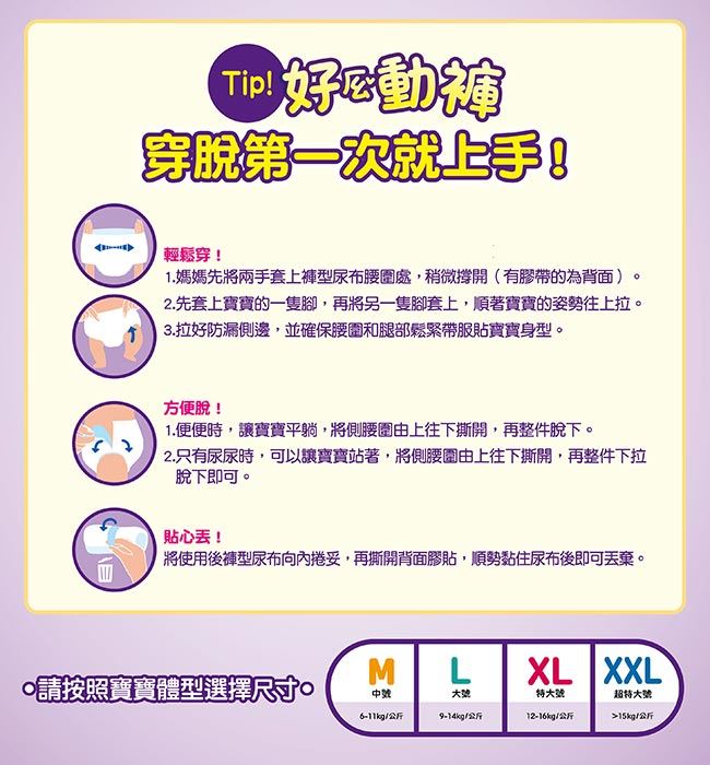 ?好動褲升級版(女寶寶專用) XXL26片x4包/箱