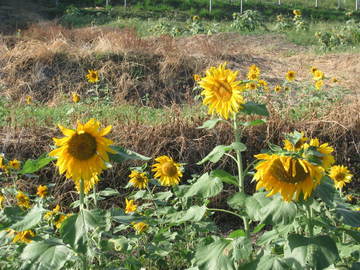 看到家附近的田裏種了許多的向日葵....