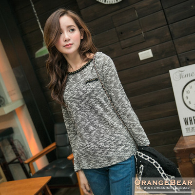 0204新品 細膩典雅~混色仿毛料混金線花邊上衣.2色商品訊息簡述: