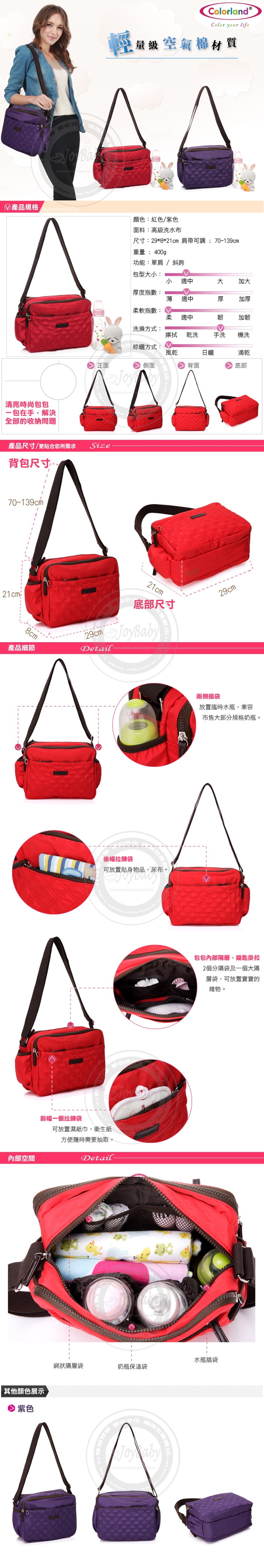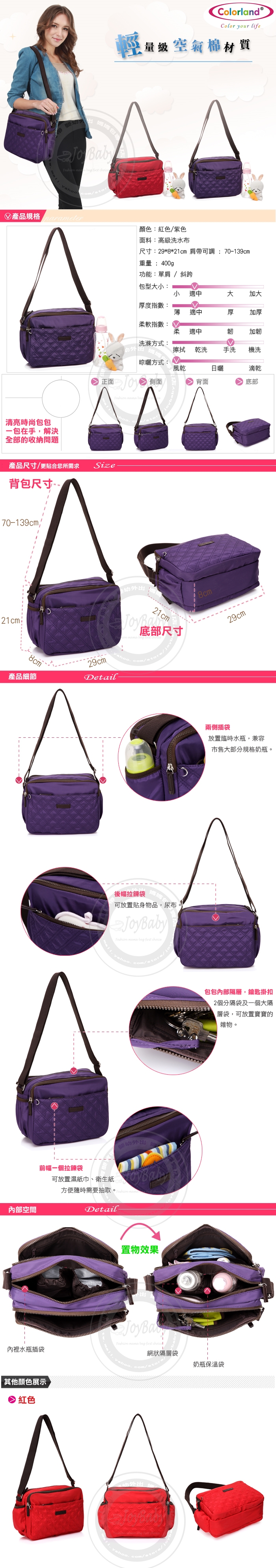 手機版專屬優惠! 入手心得~斜背媽媽包Colorland格紋空氣包肩背女包休閒包-JoyBaby不錯用喔