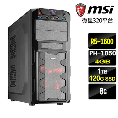【 【微星A320平台】Ryzen 5 1600六核 {進擊聖殿}GTX1050TI獨顯電玩機(R5 1600-120G SSD-1TB-PH GTX1050TI-4G) 】