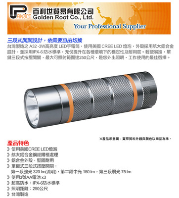 cp值超高的momo購物2【Panrico】A32-3W高亮度LED手電筒(三段亮度切換)-學英文