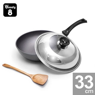 【推薦實用居家用品特價】【Woody 8】純手工鑄造鈦合金不沾炒鍋 33cm(含蓋 送木煎匙)-CP值爆表
