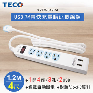 【熱賣產品】【TECO 東元】USB智慧快充電腦延長線組-1.2M(XYFWL42R4)-一定要買