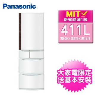【好康購物優惠】【Panasonic 國際牌】411公升一級能效日製五門變頻冰箱NR-E412VT-W1(晶鑽白)-流行