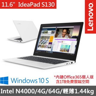 【網路熱賣產品】【含128G記憶卡】Lenovo IdeaPad S130 11.6吋筆電-白 81J10066TW(N4000-4G-64G-WIN10S)-禮物