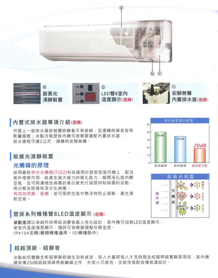 • 殺菌光清淨,R410A環保冷媒
