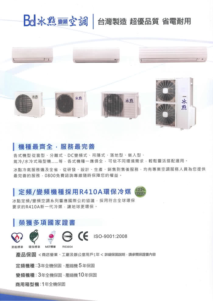 • 全機保固三年,壓縮機保固五年