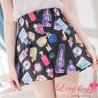 【會員限定】【lingling速達夏】法式滑料紗香水瓶褲裙PA2276(法式黑)