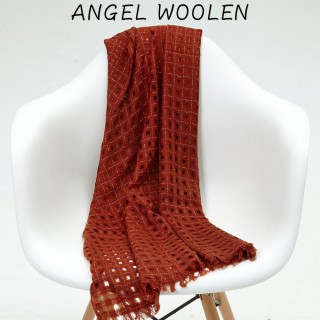 【ANGEL WOOLEN】簍空編織羊毛披肩(暗紅色)