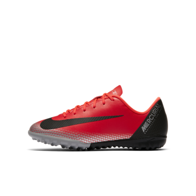 Nike Jr. MercurialX Vapor XII Academy CR7 小/大童草地足球鞋採用織物和合成材質,能夠包覆腳部,帶來舒適支撐與草底球場上的絕佳觸球感。