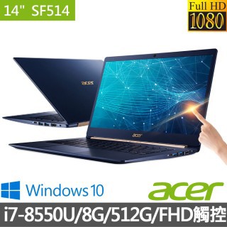 【限時活動搶便宜】【acer 宏碁】福利品SF514-52T-83U3 14吋觸控超輕薄筆電-寶石藍(I7-8550U-8G-512G SSD-Win10)-周年慶刷卡購買...