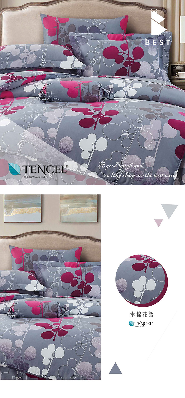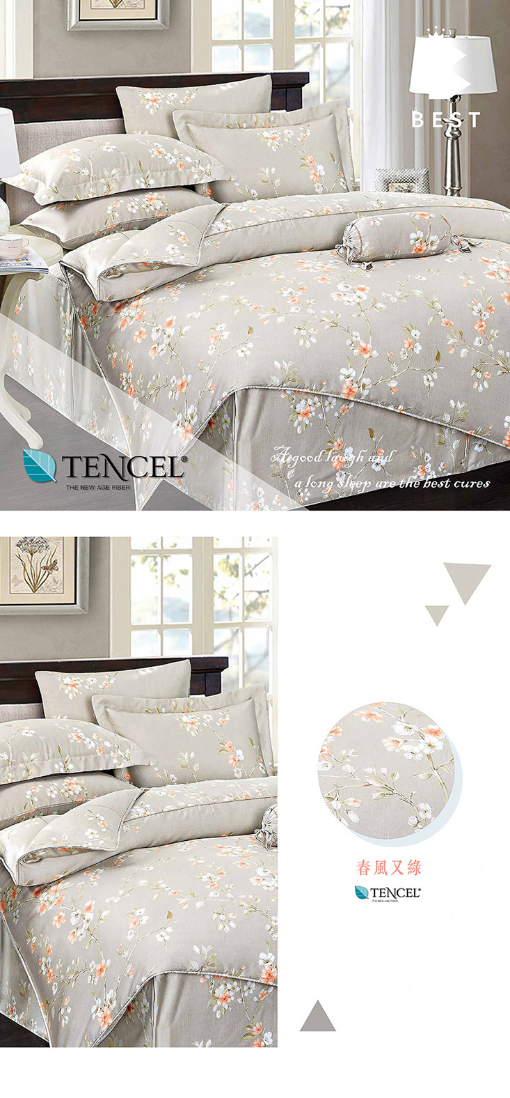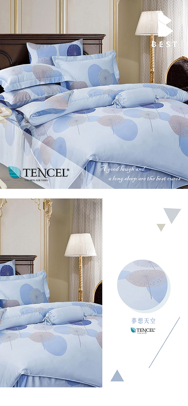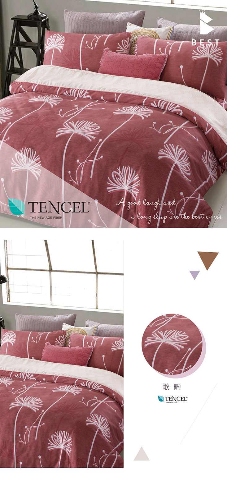 使用奧地利100%來賽爾纖維(頂級天絲) 擁有調節溫度特性,溫潤舒適,創造家與寢具的溫馨感!