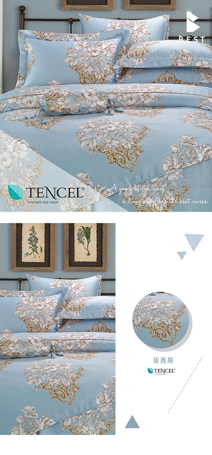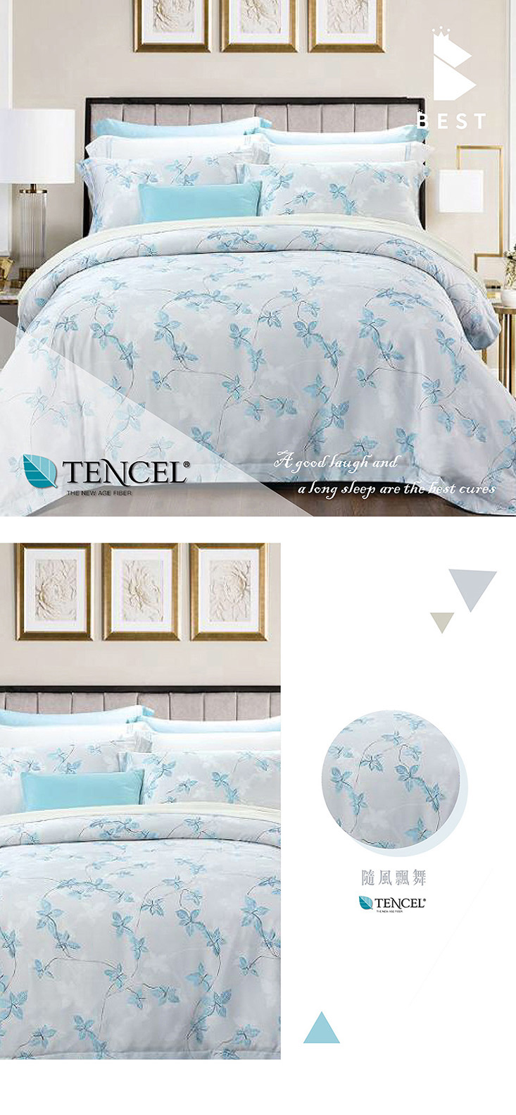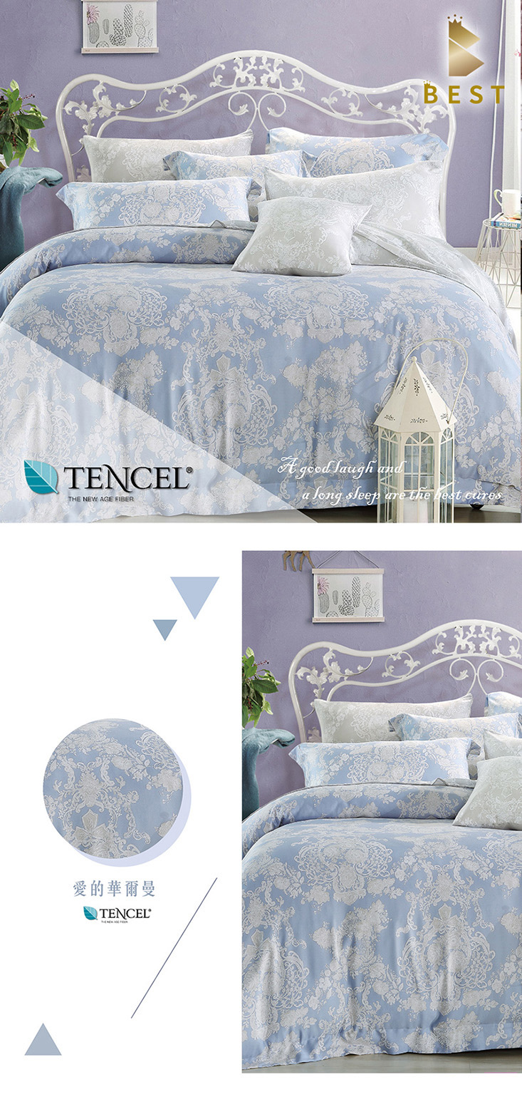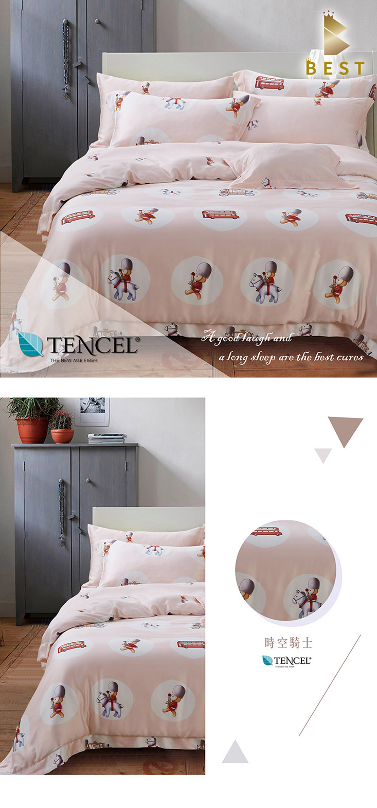 使用奧地利100%來賽爾纖維(頂級天絲) 擁有調節溫度特性,溫潤舒適,創造家與寢具的溫馨感!