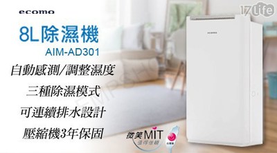【日本ecomo】節能清淨 8L除濕機 AIM-AD301 討論,推薦,開箱,CP值,熱賣,團購,便宜,優惠,介紹,排行,精選,特價,周年慶,體驗,限時