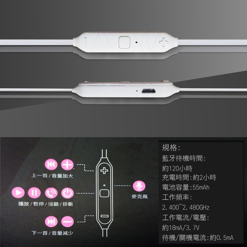 ●具有來電接聽/掛斷、音量調整、撥放/暫停、上/下曲切換功能