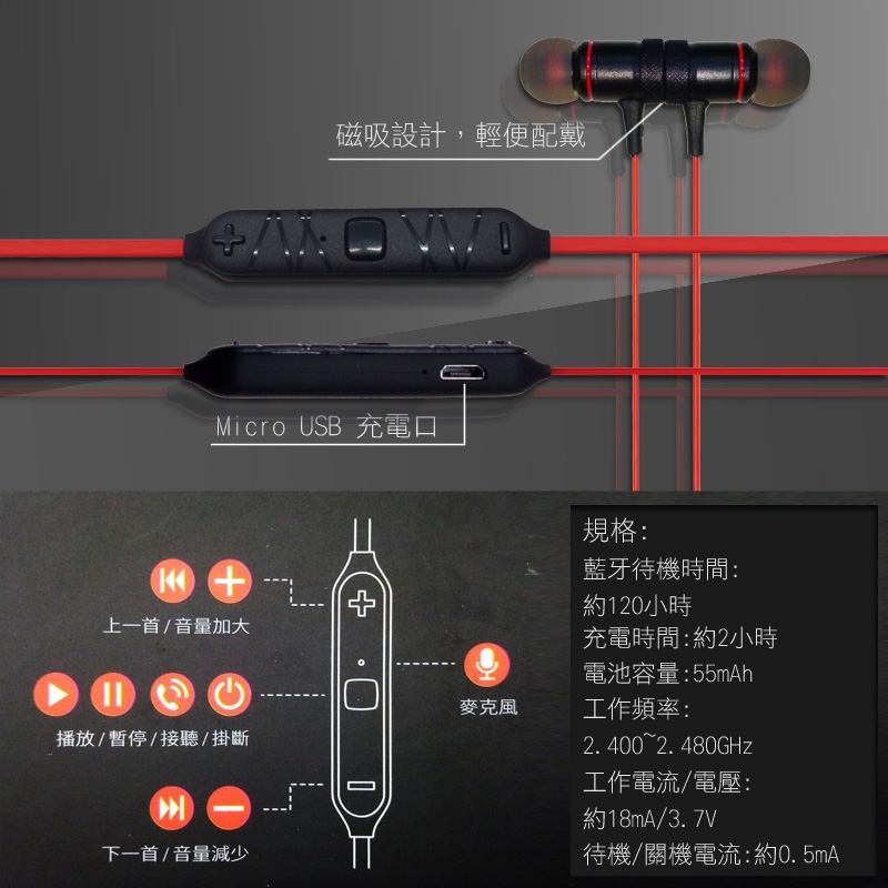 ●磁吸式無線運動型藍牙耳機,後掛式磁吸設計,輕便配戴