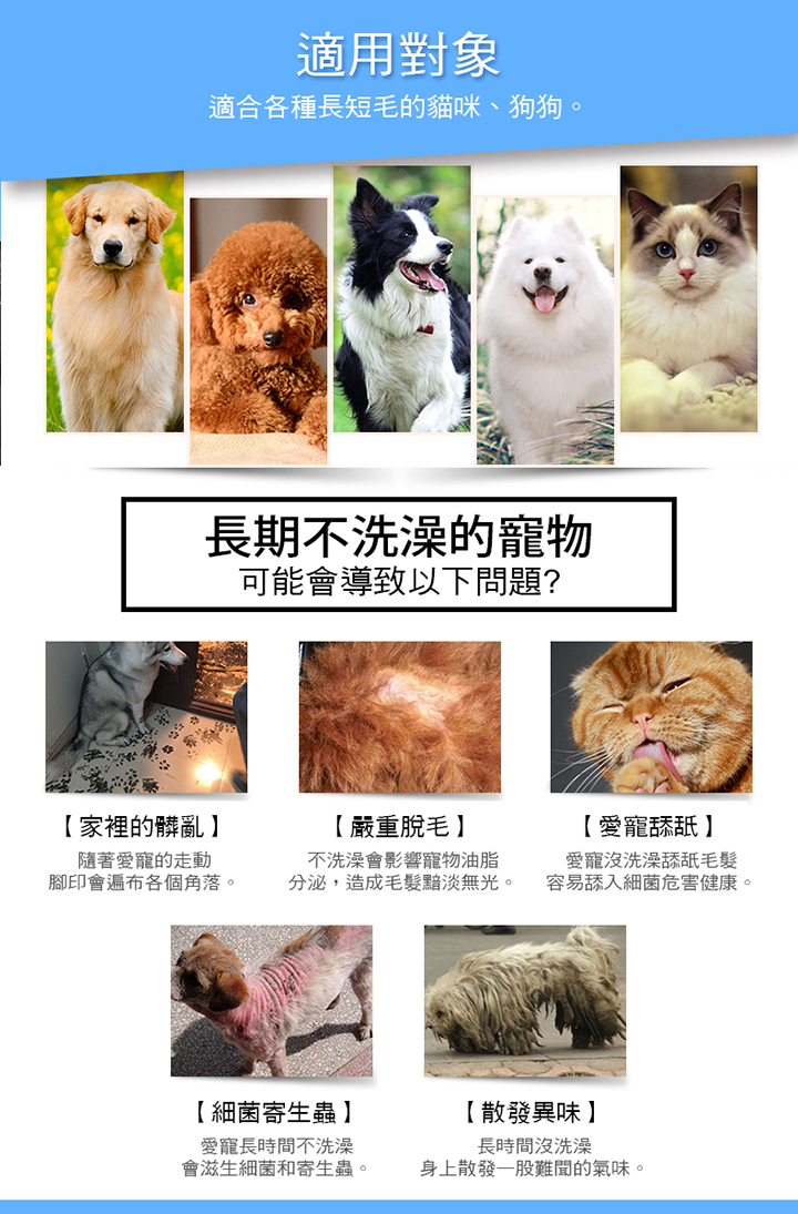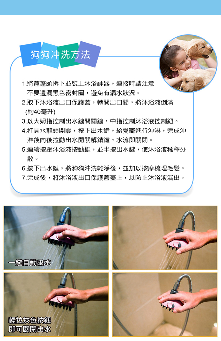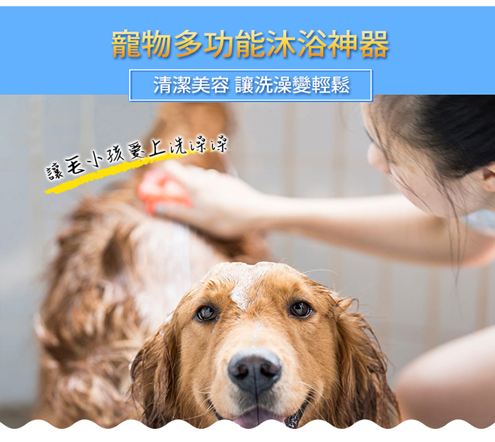 全新寵物多功能沐浴神器,多功能設計,出皂液/沖洗/梳毛/按摩一次搞定,輕巧便利,讓您的毛小孩愛上洗澡。