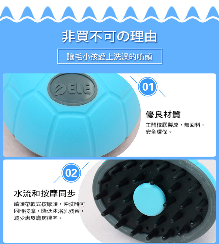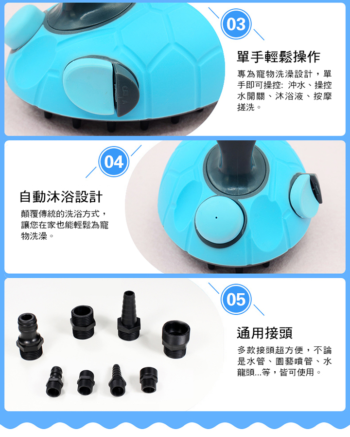 ★多功能設計,出皂液/ 沖洗 / 梳毛刷 / 寵物按摩 一次搞定