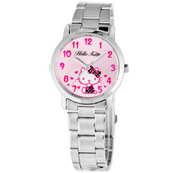 | HELLO KITTY 甜蜜嘉賓時尚腕錶(粉紅/30mm) 簡約時尚的設計搭配俐落率性的不鏽鋼錶帶,散發年輕又成熟的俏麗時尚! 炫光質感的滿版大錶盤,正下方的超卡哇依經典側坐KITTY圖樣、12點鐘方向俏麗迷人的草寫品牌名稱與俏皮的阿拉伯數字時標,再配上精準的劍型指針,展現配戴者的成熟穩重之感! 在時尚氣質裡點綴可愛的氛圍,將俏皮可愛與都會時尚緊密的揉合在一起,對於喜愛HELLO KITTY的您,絕對是相當具有收藏配戴的價值喔!