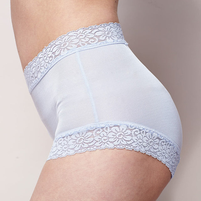 下殺! 送禮必備【矜蘭妃】100%蠶絲頂級42針蕾絲平口內褲(藍色)終於補貨了!