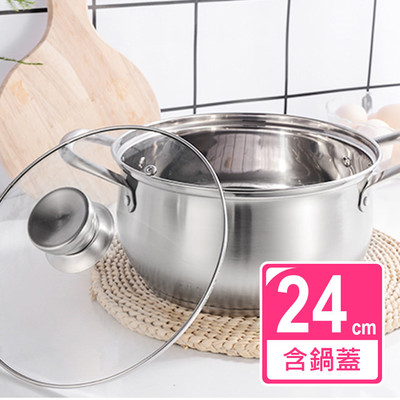【 【晶輝居家】不鏽鋼附可視鍋蓋雙耳湯鍋 24cm 1件組(F1177) 】