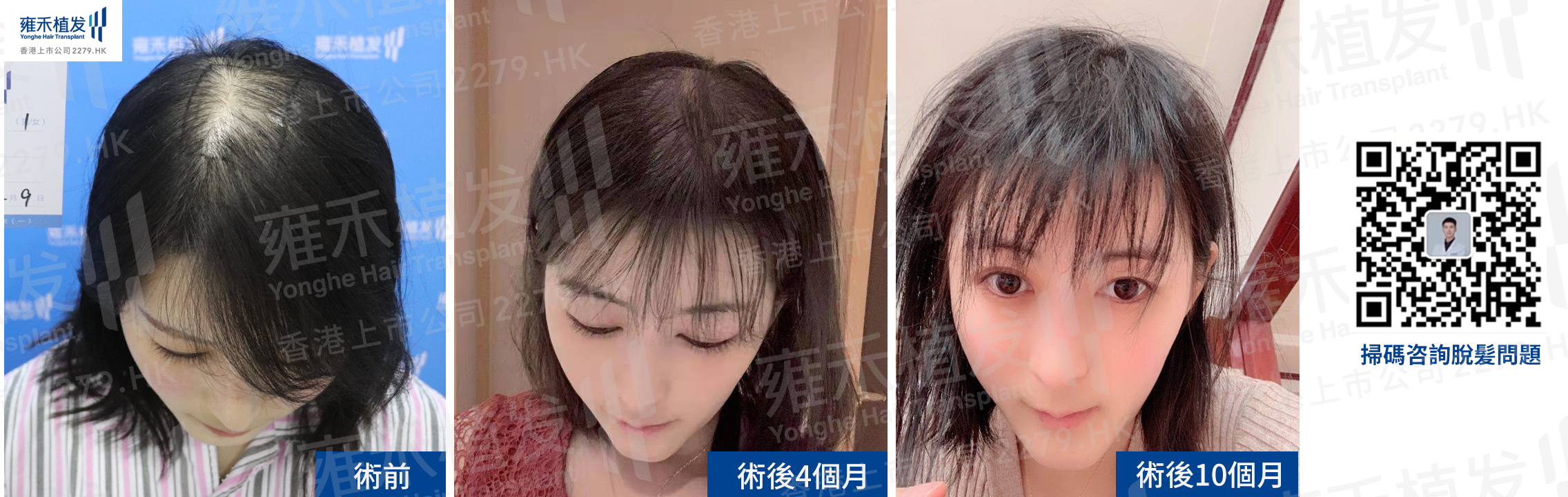我們拿女性脂溢性脫髮來舉個例子。這種女性脫髮不會從髮際線開始脫到頭頂,但時整個頭頂區域呈彌散狀脫髮,看起來非常稀疏。