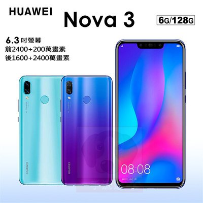 【年年爆版】HUAWEI nova 3 6G-128G 贈64G記憶卡+9H玻璃貼 6.3吋 2400萬海報級自拍 華為 智慧型手機 免運費-限定商品購買享特價