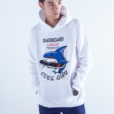 【春節送禮推薦】鯊魚咬滑板刷毛帽T(白色) 296 特賣搶先看
